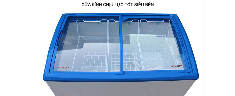 Tủ đông Sanaky VH-3899K dàn lạnh đông được trang bị cửa kính giúp khách hàng dễ dàng quan sát, lựa chọn các loại thực phẩm được bảo quản bên trong tủ. Lớp kính của tủ được thiết kế dày, chịu lực tốt, độ bền cao nên có thể chống lại những va đập trong quá trình sử dụng, giảm hao nhiệt ra môi trường.