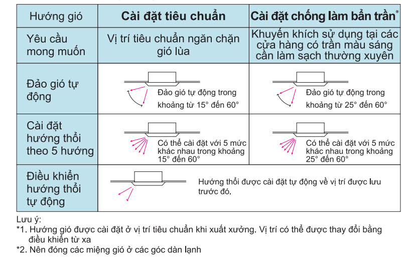 Sản khoái và thuận tiện tối ưu với 2 chế độ thổi gió của máy lạnh âm trần Daikin: