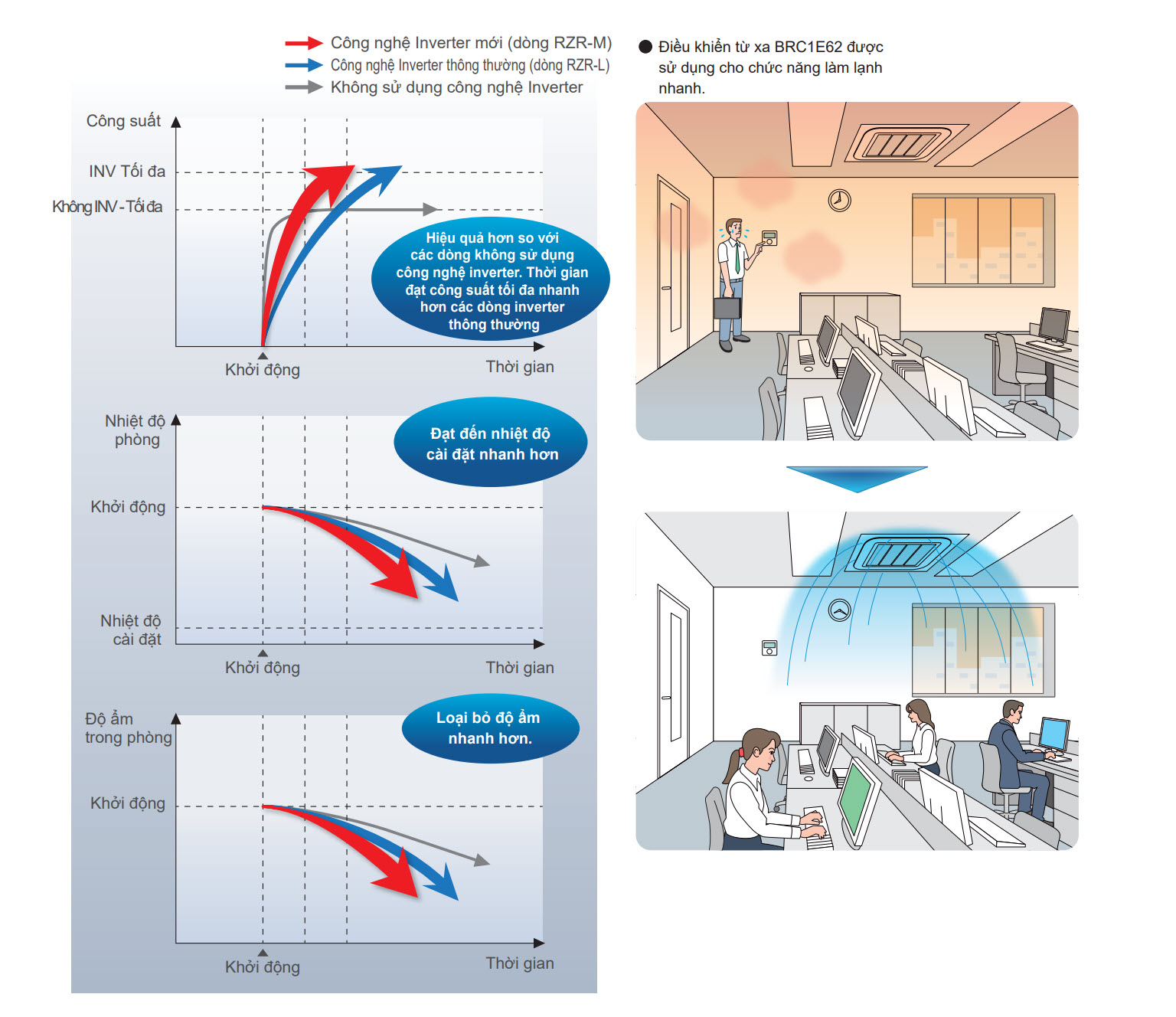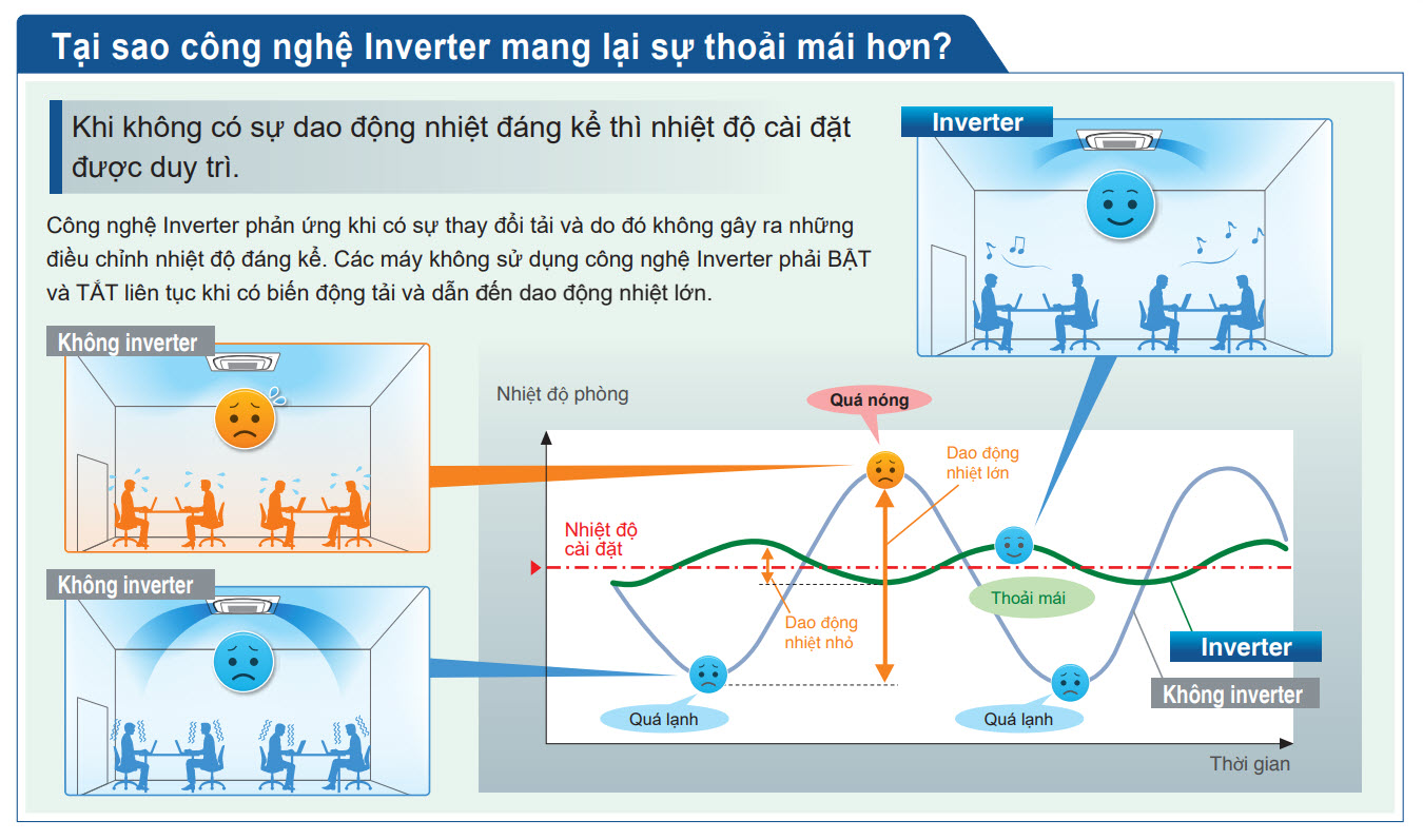 Khả năng làm lạnh nhanh và hút ẩm không khí: Công nghệ inverter mới mang lại cảm giác thoải mái nhanh chóng hơn (Một chiều lạnh)