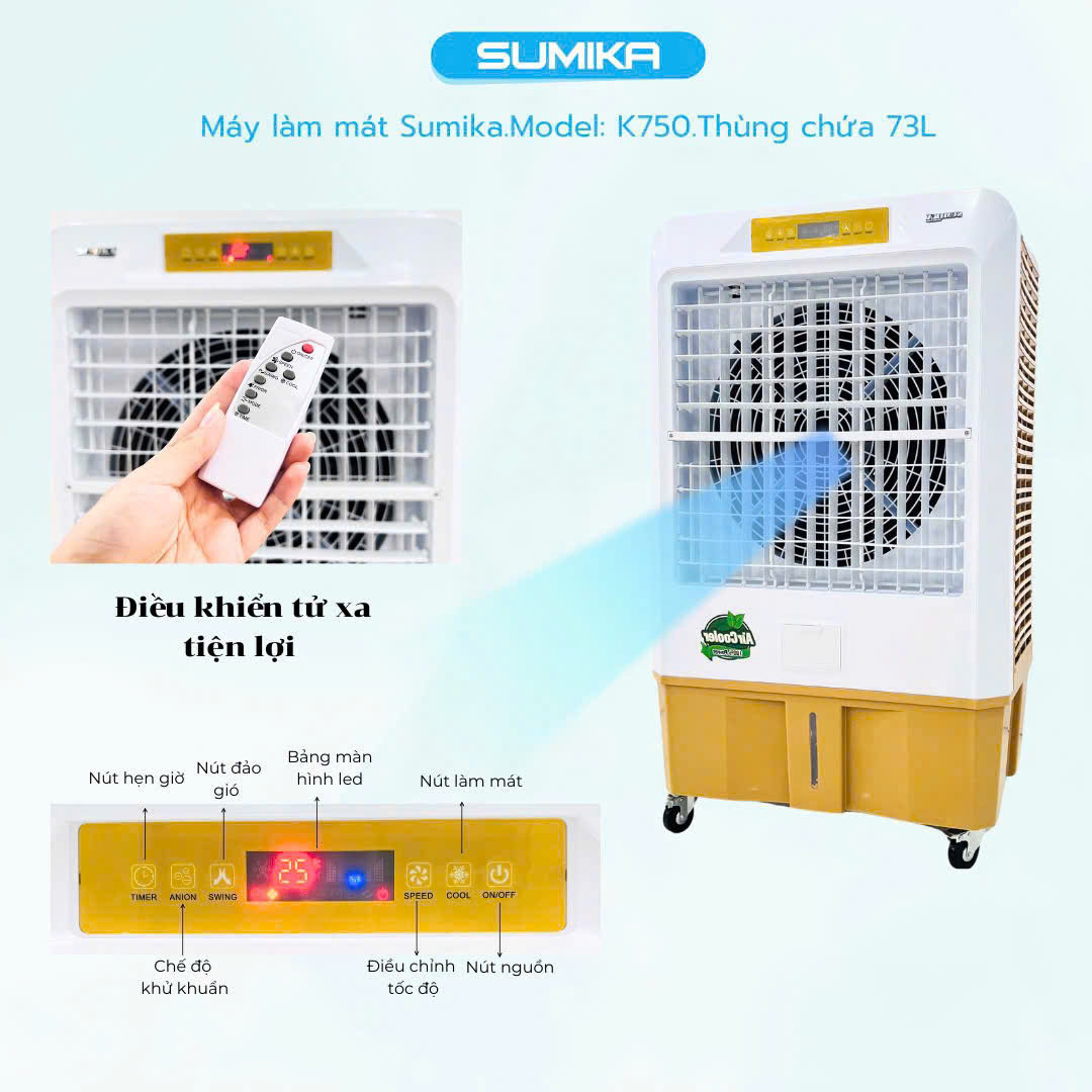 Đón hè sảng khoái với quạt hơi nước Sumika K750 dòng sản phẩm nổi bật từ thương hiệu Sumika uy tín. Vận hành êm, tiết kiệm năng lượng, cho không gian sống mát mẻ, dễ chịu. Sự lựa chọn hoàn hảo cho gia đình hiện đại muốn xua tan nắng nóng tức thì