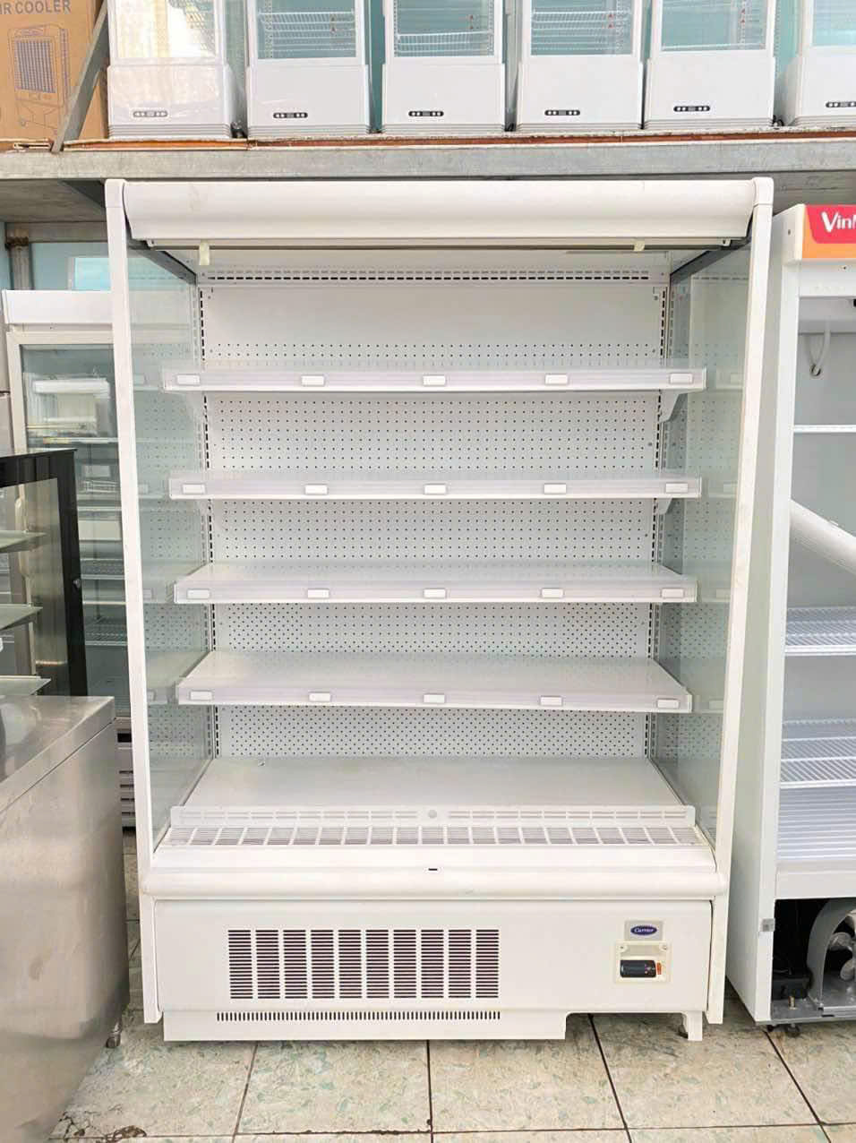 Hiện nay có nhiều dòng trưng bày nhưng dòng tủ mát hở luôn được các siêu thị nhắm đến vì giá thành cạnh tranh , mẫu mã đẹp, độ cao tủ thấp khách dễ chọn hàng hóa. Tủ mát trưng bày 1.3m Carrier giúp người bán dễ trưng bày hàng hóa, người mua nhìn sản phẩm trực quan nhất